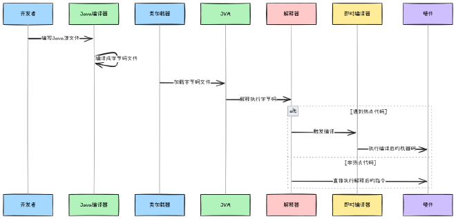 HotSpot VM 是当下高性能虚拟机的杰出代表,采用解释器与即时编译器并存的架构。在这种架构下,解释器可以快速启动,对代码进行解释执行;而即时编译器则会在运行过程中,将热点代码编译成本地机器码,大大提高执行效率。正是得益于这种架构,Java 程序的运行性能今非昔比,足以与 C/C++ 程序相媲美。