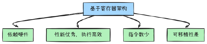 基于栈式架构具有诸多优势:设计和实现相对简单,适合资源受限的系统;它避开了寄存器分配的难题,采用零地址指令方式分配;指令流中的指令大多是零地址指令,执行过程依赖操作栈,指令集较小,编译器容易实现;并且无需特定硬件支持,可移植性强,便于实现跨平台。不过,其缺点也较为明显,性能相对较低,实现相同功能往往需要更多指令。
