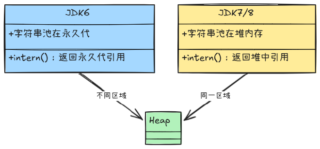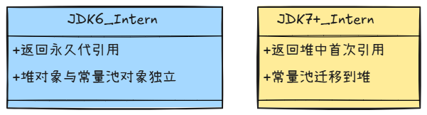 intern()返回值 | 永久代对象引用 | 堆中首次出现对象引用 |