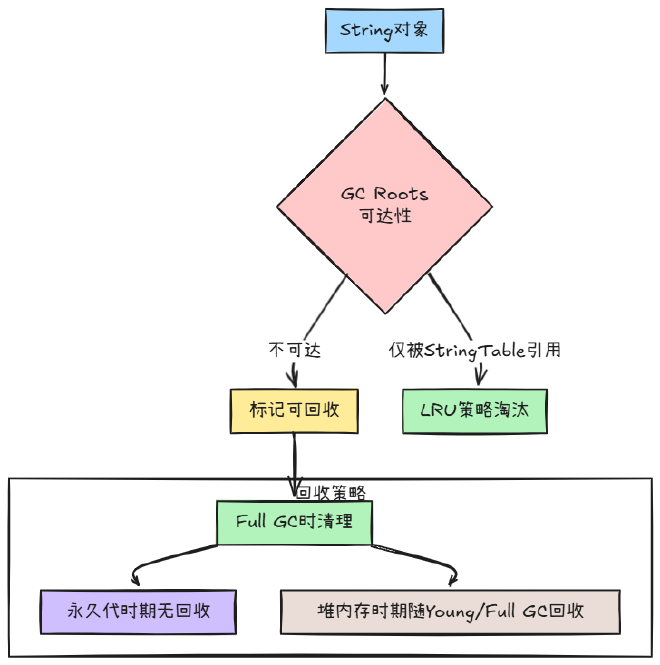 - 无任何GC Roots引用的字符串对象(包括失去所有引用的字面量)
