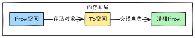 - 存活对象迁移:将From区存活对象复制到To区,并保持内存紧凑