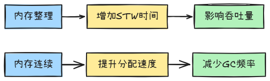 标记-压缩 | 内存滑动整理 | STW时间增加 |