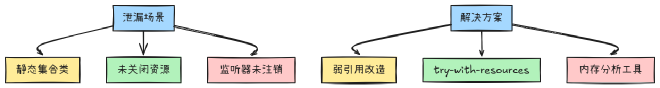 - 线程局部变量泄漏:ThreadLocal使用后未remove