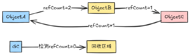 循环引用问题:即使对象间互相引用,但因外部引用断开,实际已成为垃圾却无法被识别