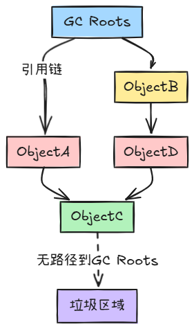 在JVM语境中,“垃圾"指失去所有引用的堆内存对象。判定标准: