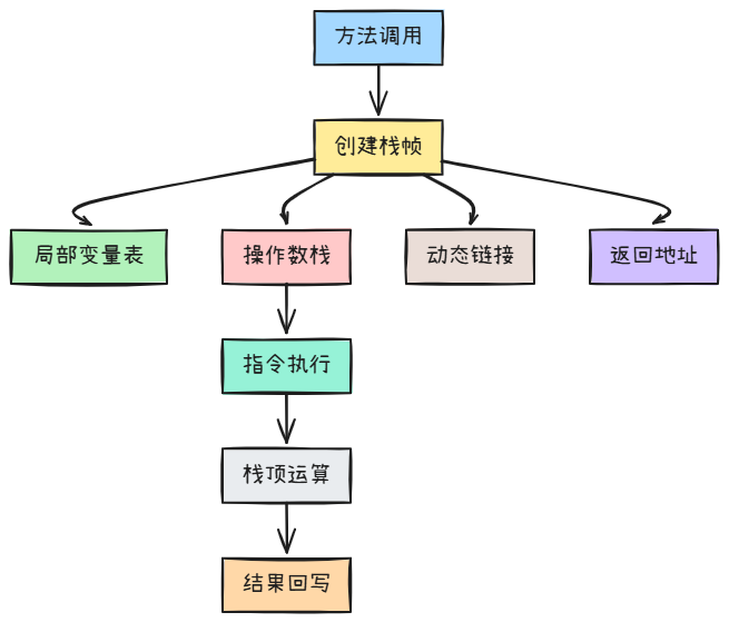 - 操作数栈:基于栈的执行模型核心,所有运算操作都通过操作数栈完成
