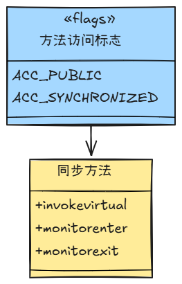 - 方法级同步通过ACC_SYNCHRONIZED标志实现