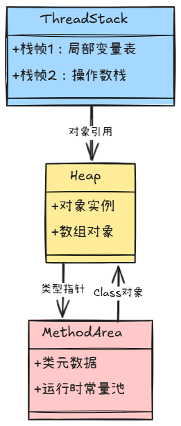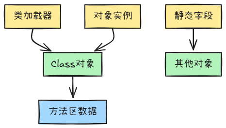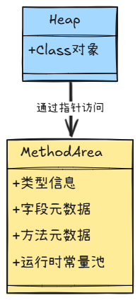- Class对象存储在堆中,作为方法区数据的访问入口