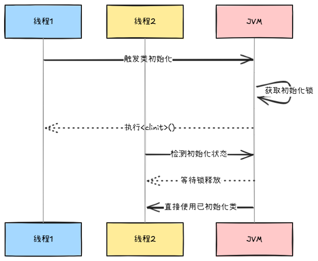 - 初始化之前的三个阶段(加载、链接)都是JVM控制的
