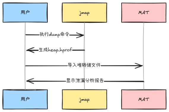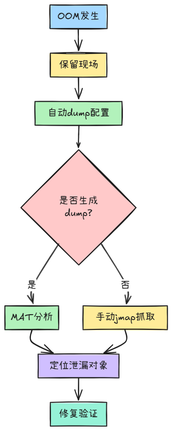 内存持续增长 | jstat + jmap | 1. 观察GC频率变化 2. 生成堆转储对比 3. MAT分析对象引用链 |