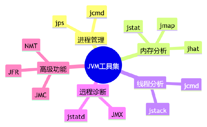 在JVM性能调优和故障排查中,命令行工具是开发运维人员最锋利的"手术刀"。如图1所示,这些工具可以分为三类: