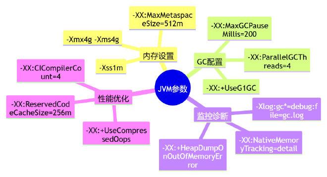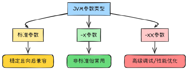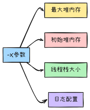通过三组参数类型构建完整的JVM运行环境控制体系: