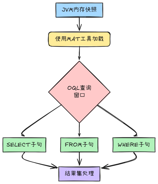 OQL(Object Query Language)是JVM内存分析工具(如MAT)提供的对象查询语言,它允许开发人员直接对堆内存中的对象进行查询和分析。相较于传统的对象遍历方式,OQL具有以下优势: