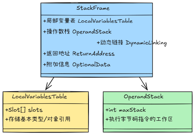 - 栈帧:方法调用的基本单元