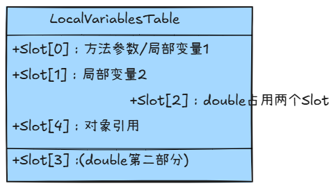 - 局部变量表:存放方法参数和局部变量