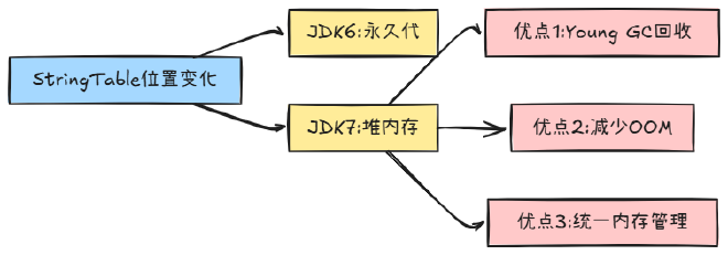 - 性能提升:字符串常量池移至堆内存,提高回收效率