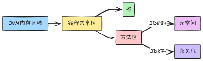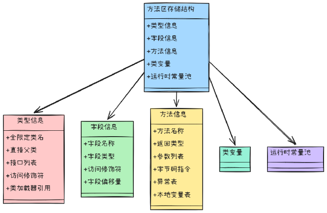 - 存储位置:方法区(JDK7在永久代,JDK8+在元空间)