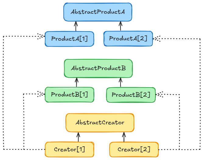 - Creator 为抽象创建类,也就是抽象工厂,具体如何创建产品类是由具体的实现工厂ConcreteCreator完成的。