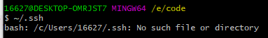 - 如果电脑上没有,那就显示bash: /c/Users/…/.ssh: No such file or directory
