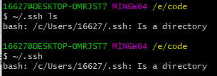 - 如果电脑上有,就会显示bash: /c/Users/…/.ssh: Is a directory