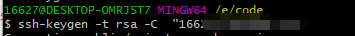 然后就会显示这两行: Generating public/private rsa key pair. Enter file in which to save the key (/c/Users/16627/.ssh/id_rsa):