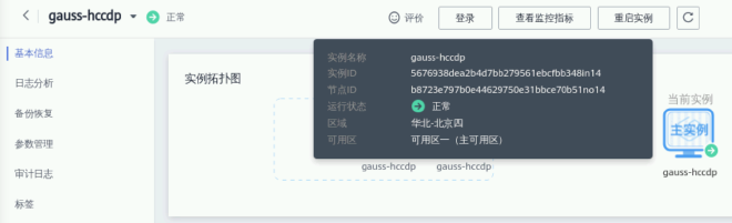 注意:GaussDB主节点的IP可通过点击GaussDB实例名称,进入信息页面查看: