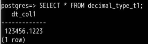 INSERT INTO decimal_type_t1 VALUES(123456.122331);