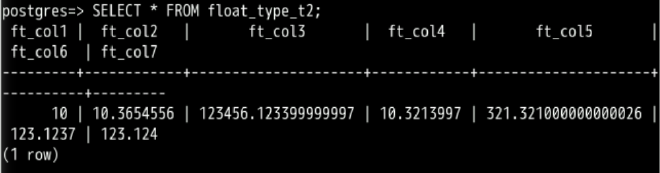 SELECT * FROM float_type_t2 ;