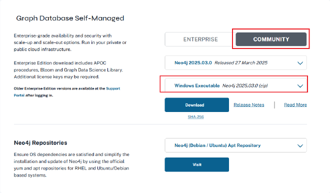 - 访问 Neo4j 官方下载页面: https://neo4j.com/download-center/#community