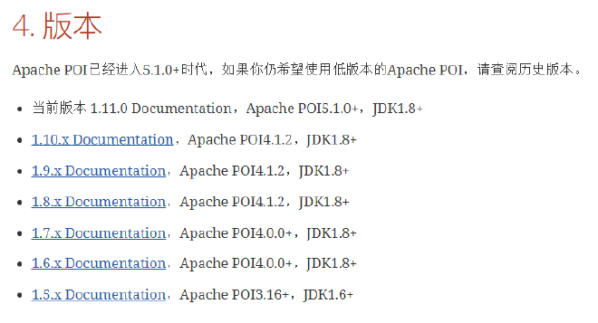 poi-tl不同版本需要不同的poi版本与jdk版本。可以参照官网: